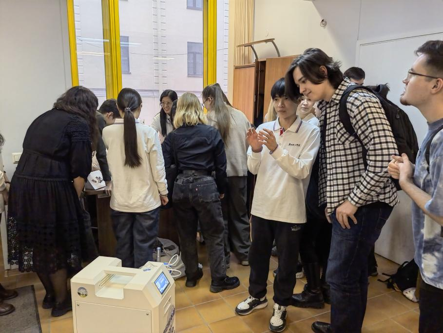此外,智造先锋工作室还携带了一款一体式制氧机前往波罗的海国立技术大学。在该校,工作室成员向学生们详细展示了这款制氧机的工作原理和操作方法。学生们对此表现出了极大的好奇心和浓厚兴趣,纷纷对制氧机的设计和功能给予了高度评价。