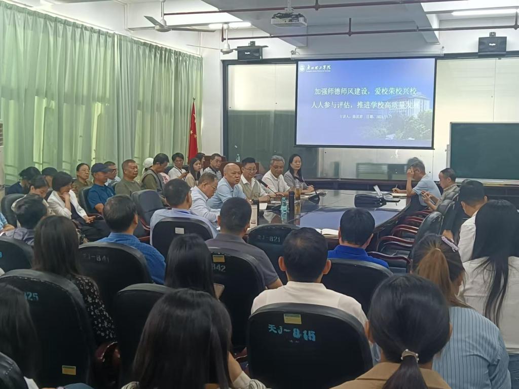 他提到,全体教师要以本次师德师风建设专题会议为契机,开启学院对师德师风的深入探讨与追求:以真诚之心育人,以高尚之德立世,以无私之行奉献,以敬业之态工作,以创新之意探索,以责任之感担当。全体教师认真聆听、积极参与讨论。大家一致认为,师德师风建设是一项长期且持续的重要工作。在今后的工作中,将以此次会议为契机,不断反思总结,提高自身师德修养。