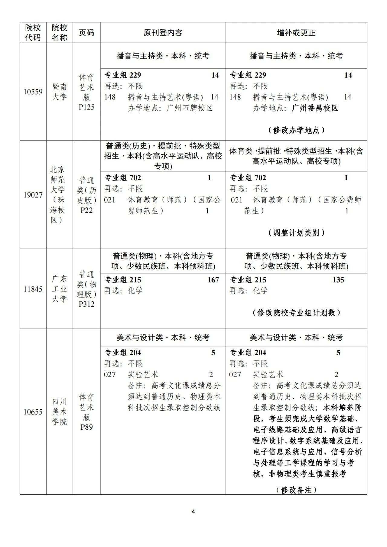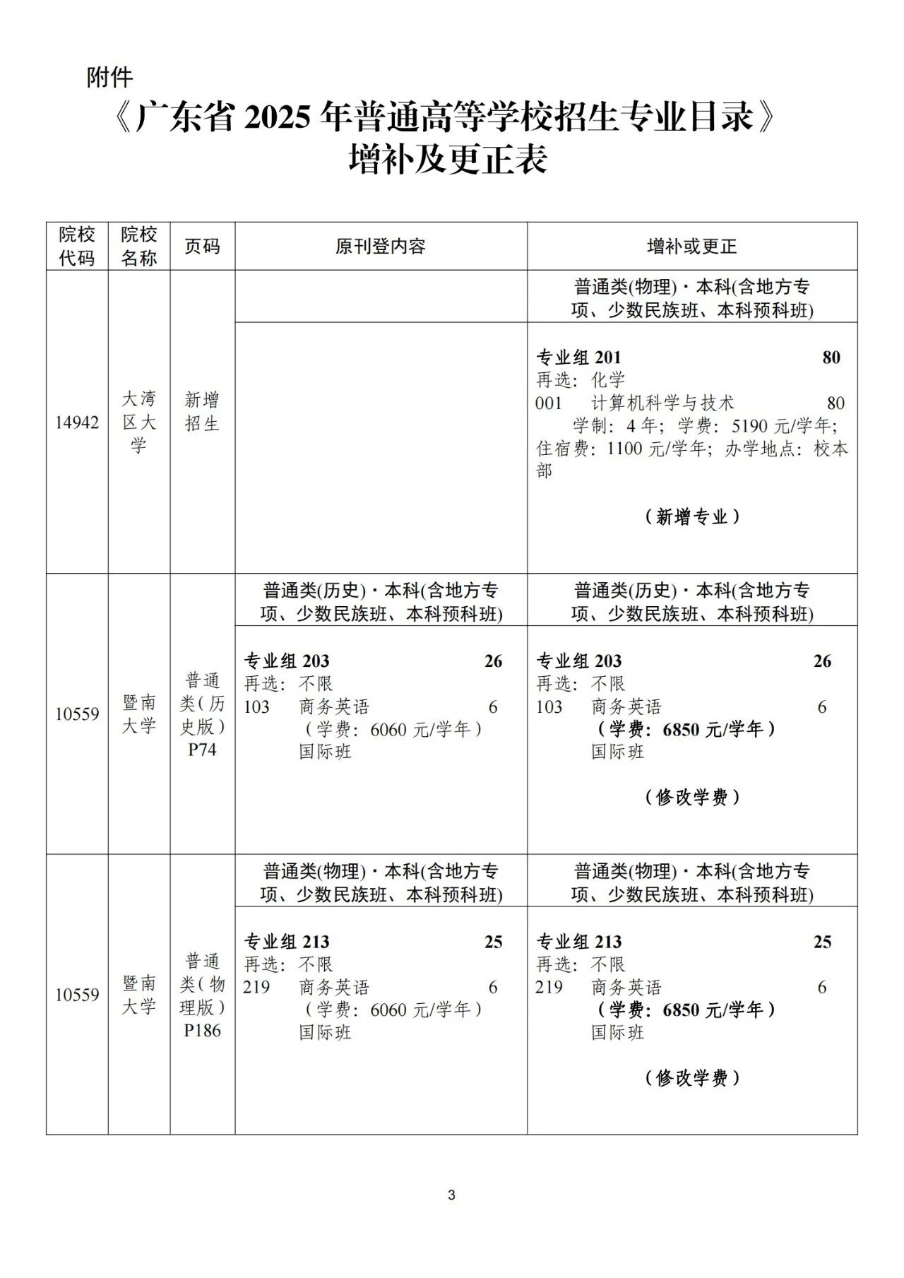 应有关高校的要求,现对《广东省2025年普通高等学校招生专业目录》部分内容作如下增补及更正,请及时转发各中学并告知学生。
