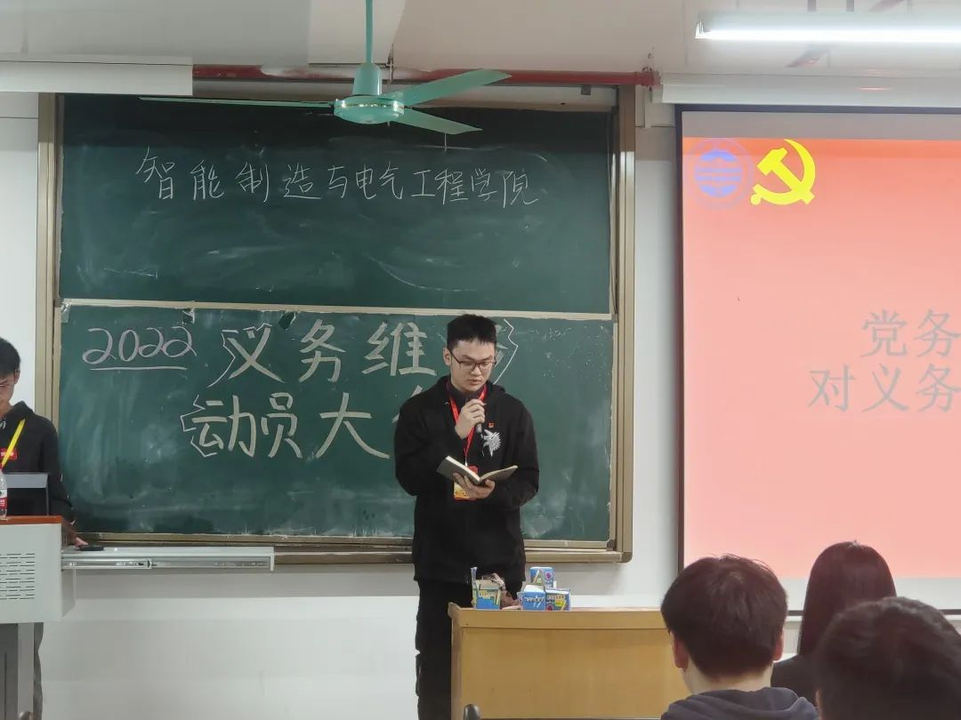 团总支组织部代表宣读工作安排,解读义务维修工作方案,希望参与义务维修的志愿者做到服务同学,学有所长,学有所用,回报社会,弘扬雷锋精神,把安全放在第一位,举手投足之间要文明礼貌,彰显我院学子风采。党务工作部代表潘展鸿作动员讲话。我们作为KY开元集团的学生,更应结合自身专业和个人能力、学以致用,希望大家能够做好先锋榜样,在活动中落实为人民服务这一核心,参与并享受其中,在活动中帮助到他人,为全校师生服务,向全校师生呈现最好的一面。团总支组织委员黄教恒明确表示,义务维修活动是展现组织部门人员协调配合的有利契机,希望大家坚持以服务群众为中心,发扬雷锋精神,在全校师生面前做好榜样,为全校师生服务。