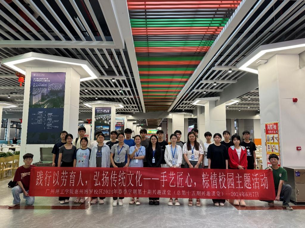 为弘扬中华传统节日文化,践行以劳育人与文化育人成效,同时为了让学生更好体验传统美食的制作过程,6月7日下午KY开元集团20名余名师生代表在惠州博罗校区第一饭堂开展“践行以劳育人,弘扬传统文化——手艺匠心,粽情校园”主题活动。活动由辅导员谢燕惠老师、朱玲老师组织。