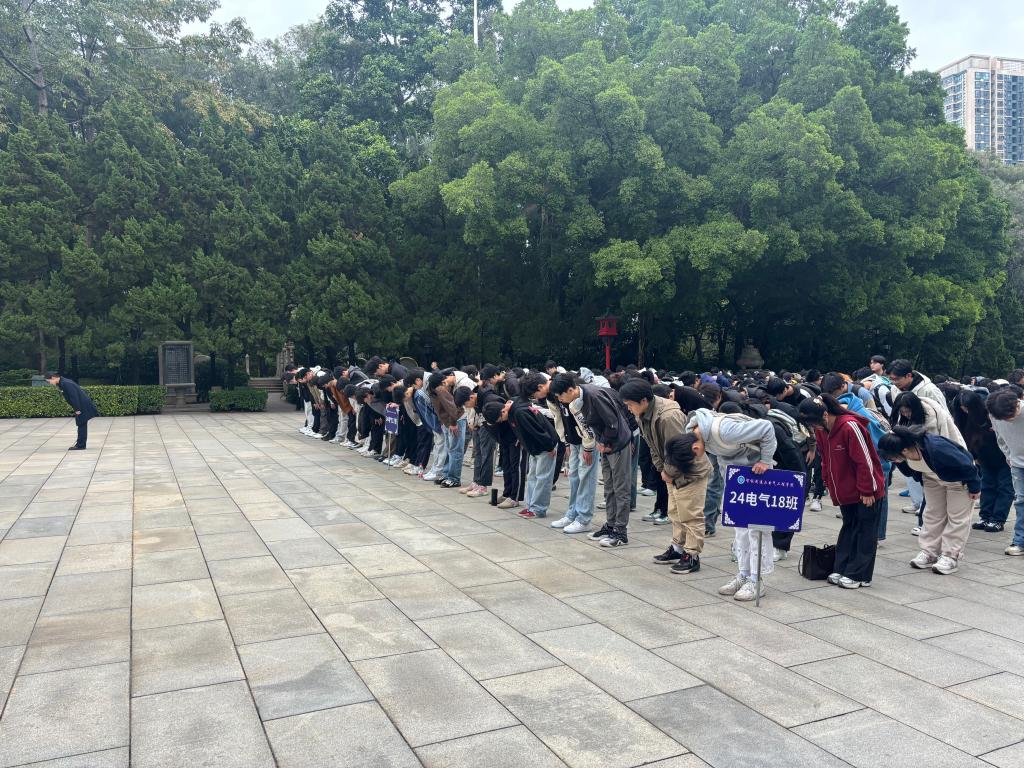 随后,师生们一同瞻仰了烈士墓碑和纪念雕塑。在烈士墓前,全体师生怀着崇敬的心情,向革命先烈深深鞠躬,以表达对先烈的缅怀之情。参观过程中,辅导员老师结合电气工程和机器人专业的特色,引导学生思考如何将专业所学服务于国家发展。例如,在讨论近代工业革命与辛亥革命的联系时,老师鼓励学生们将技术创新与爱国情怀相结合,未来在智能制造领域勇于探索。