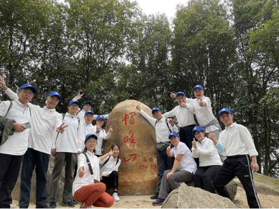 大家都怀着愉悦的心情向山顶走去,一路上互相加油鼓劲,说说笑笑,在历经2个多小时后成功登顶。