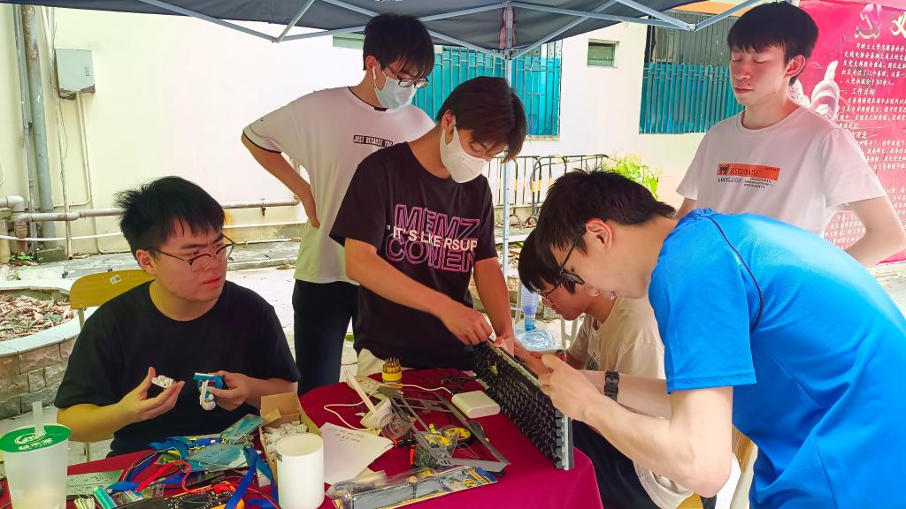 活动开始,工作人员热情接待前来维修电器的老师和同学,对这些器件进行分类登记。在林显其老师指导下,同学们运用在课堂和实验室里学到的专业知识,有条不紊地为闹钟、音响、风扇、台灯等器件“诊断”故障,对症下药,将匠心于求、认真严谨的志愿服务精神展现得淋漓尽致。对于不方便携带的大型电器,活动还进行了扫码预约上门维修服务,工作人员前往师生宿舍维修电器。为防止日后再次出现类似问题,工作人员对容易出现的常见问题进行分析讲解,宣传安全用电知识。经过大家一天的不懈努力,有序并高效的完成了维修工作,合计维修大小电器100多件,获得了到场师生的一致称赞。