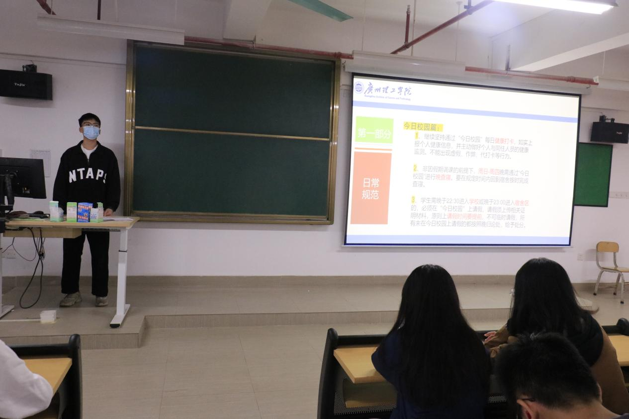 班会上,各班班长紧扣学生行为准则教育,从大学生日常行为规范、学校宿舍管理规定和学校违纪处分规定三个方面深入阐述。倡导学生文明知识要牢记、宿舍制度要遵守、卫生清洁要抓好、仪表仪态要得体、言谈举止要文明、良好形象要展现。