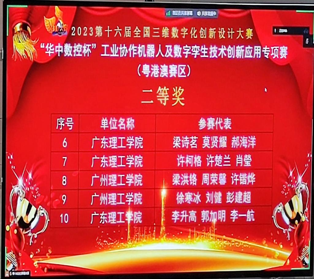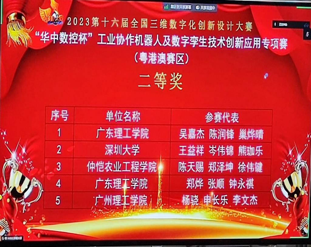 我校派出了5支参赛队伍,分别由王如意、鄢圣杰、高波、李玉忠、陈玉连5位老师指导的梁洪铬代表队、徐寒冰代表队、蓝金文代表队、杨骁代表队、陈耀堃代表队参加比赛。他们在数字孪生、PLC、三维画图软件等方面深入学习,掌握了仿生机械臂的操作步骤和使用原理。在比赛中,他们秉承科学严谨、团结细致、勇攀高峰的精神,坚持斗志昂扬,最终获得了3个二等奖和2个三等奖,成绩优异。