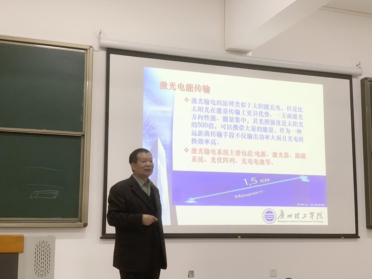 朱长青教授重点向同学们介绍了无接触电能传输的基本方式以及当前需解决的关键问题,在现场还与同学们互动讨论了CPT技术的应用与发展趋势。在场同学认真听讲,在了解了CPT技术在便携类设备、生物医学工程领域、能源交通方面、移动机器人、空间太阳能电站(SPS)的应用价值后表现出赞叹,纷纷表示以后会认真学习,打好基础,争取涉足无接触传能技术的研究。