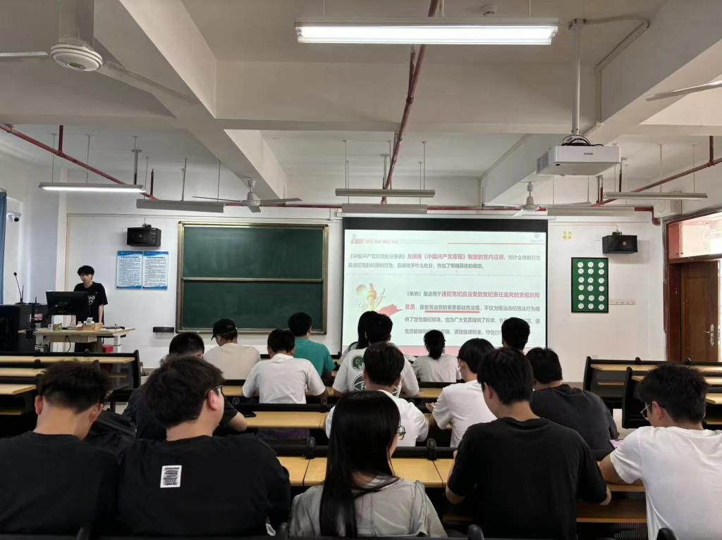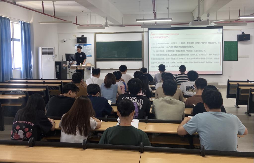 为了进一步加强党员纪律教育,提升党员的政治觉悟和党性修养,引导学生党员牢固树立党规党纪意识,坚守纪律底线,5月16日下午,智电学院学生第一、二、三党支部分别在13栋801、802、803教室组织开展集中学习《中国共产党纪律处分条例》(以下简称《条例》)。会议由林耀生、郭颖琪和蔡展宏三位同志领学,全体在校学生党员参加。