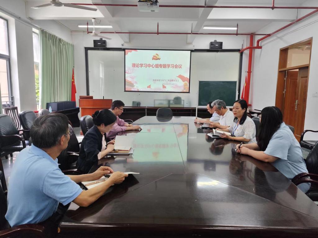 5月16日下午,智电学院党总支理论学习中心组在工程楼211会议室集中学习《中国共产党纪律处分条例》(以下简称《条例》),推动学院党纪学习教育走深走实。学院党总支书记吕在艳主持会议。