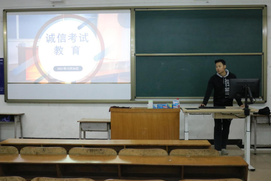 为了提高同学们的诚信考试意识,保证考试公平公正,培养正确的学习观念。12月26日晚,我院全体辅导员组织学生在6栋教学楼召开诚信考试主题班会,各班班干主持会议。