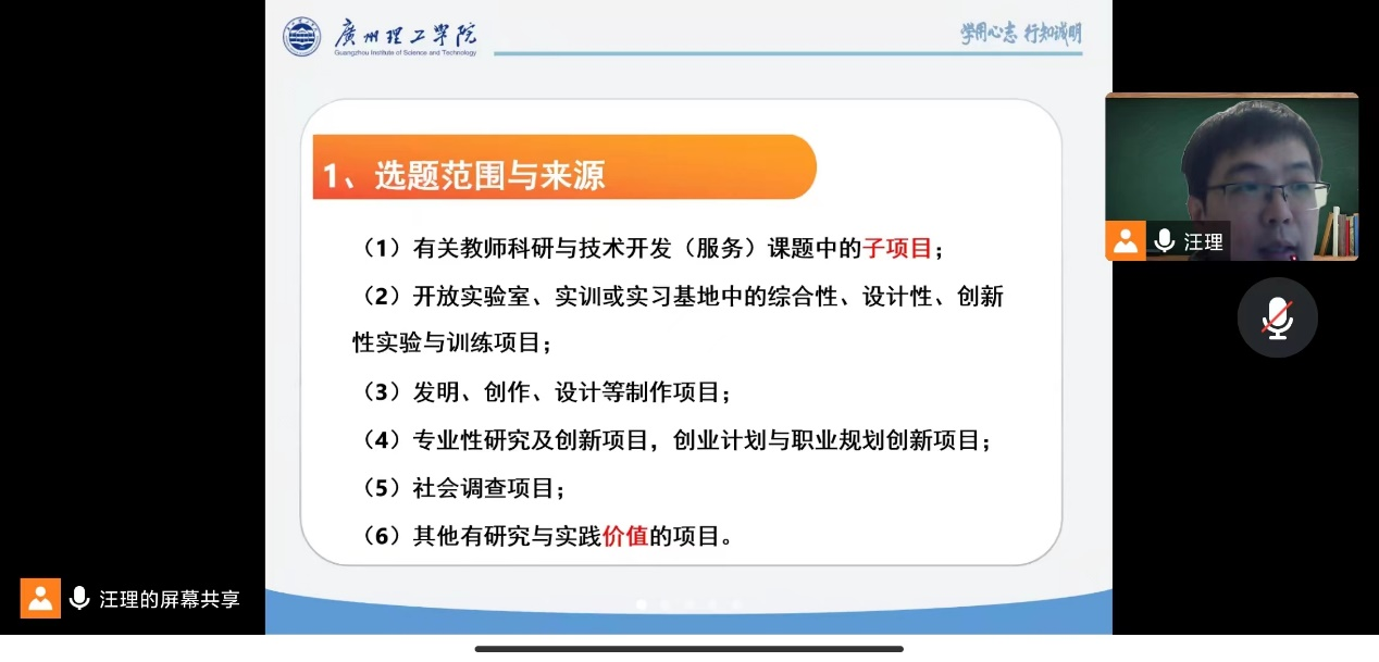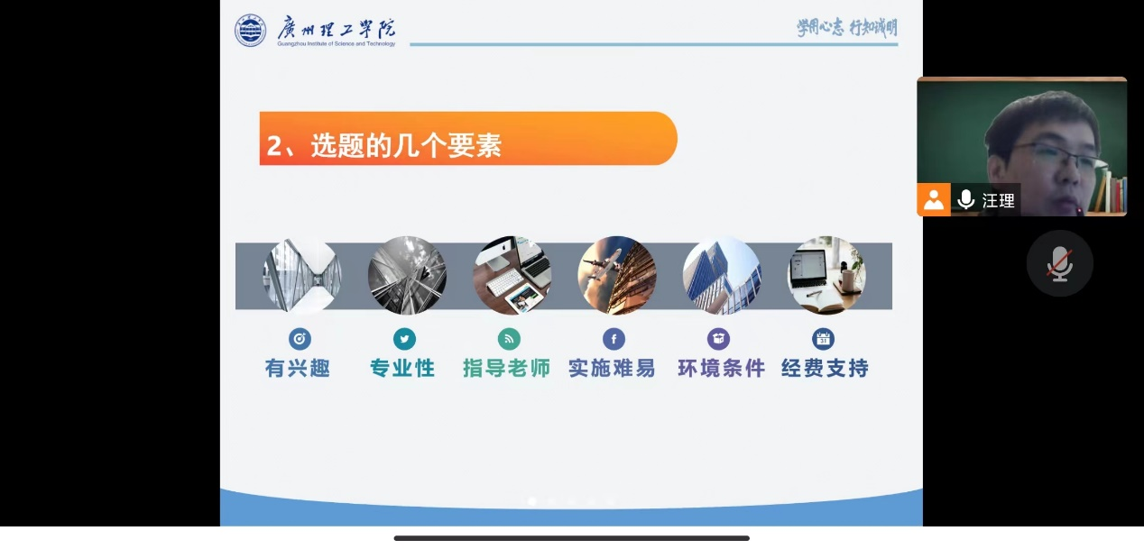 汪理老师以《提升大学生大创项目、学科技能竞赛能力》为题,围绕创新创业的认知、创业思维、竞赛指导三个方面展开论述。讲授过程中,汪老师与同学们分享了创业成功的典型案例,并向大家讲授创业计划书的撰写方法以及创业成功需要具备的条件等。在分享经验之余,汪老师通过线上互动方式,为同学们解答关于创新创业、求职就业、岗位选择等职业规划与行业发展方面的疑问。