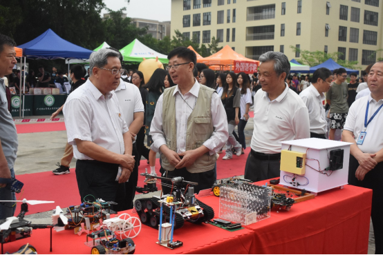 KY开元集团本次参展的作品包括“挑战杯”全国大学生系列科技学术竞赛、全国大学生机器人大赛、全国智能小车等赛事的多个优秀获奖作品,吸引了一批批学生前来参观。在老师的带领和讲解下,同学们整齐有序地进入参展地点,在互动中感受科技魅力,在思考中启迪科学智慧。