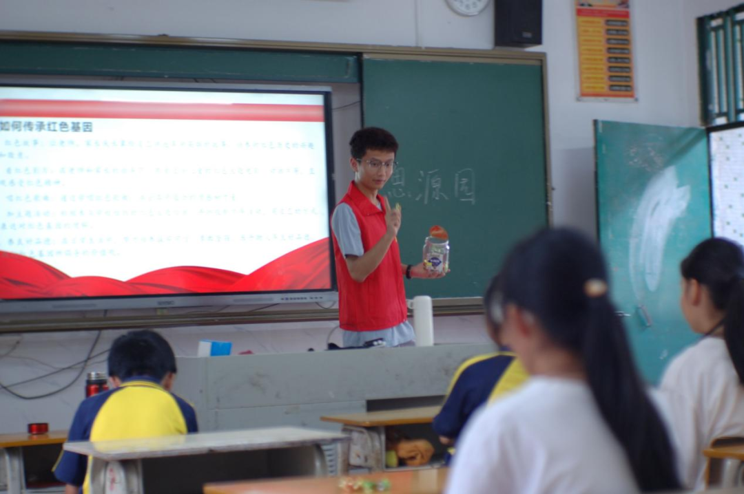 15时,同学们准时而至,齐聚教室。黄亮同学为小朋友们精心准备了一场红色知识宣讲。他引领着小朋友们回溯中国波澜壮阔的革命历史,深情讲述龙颈镇的革命历程,尤其详述了龙颈镇禁毒英雄吴桂忠的感人故事。宣讲过后,别开生面的中国知识问答活动拉开帷幕。小朋友们热情高涨,积极应答,沉浸其中,乐此不疲。