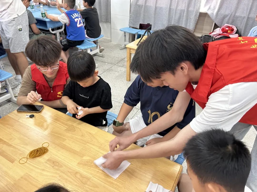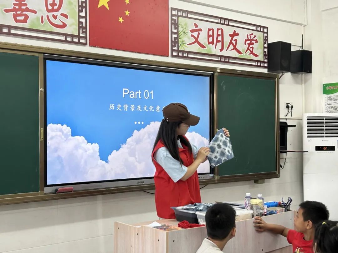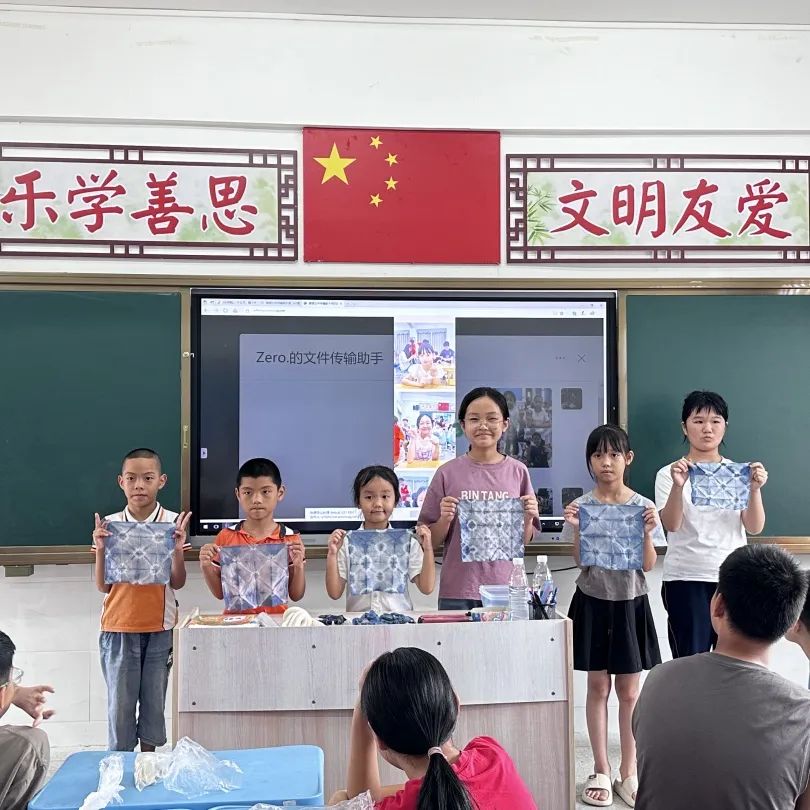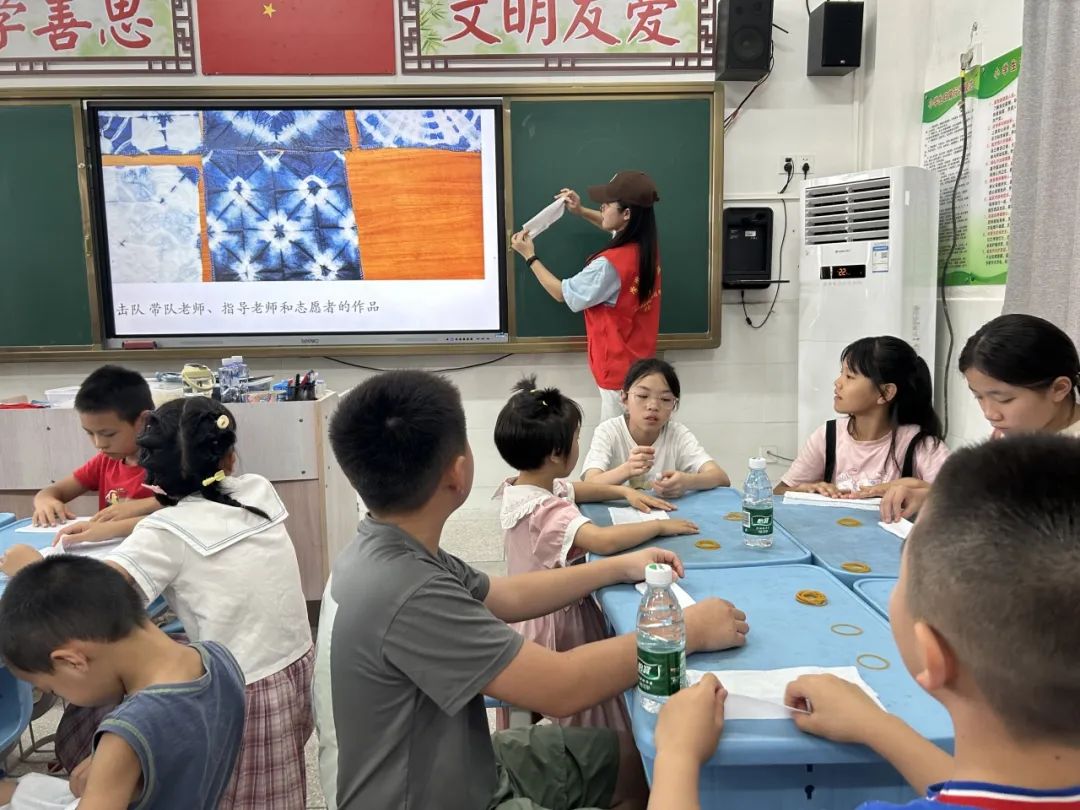 为进一步将义务支教与弘扬中华优秀传统文化相结合,进一步将义务支教与地方教育有机结合,7月16日,广州理工学院创想突击队在梅蓄小学给小朋友们带来一场别开生面的扎染手工体验课,带领小朋友们沉浸式体验扎染工艺,感受传统文化魅力;突击队到梅州抽水蓄能电站和留畲村人民会堂实地研学,进一步了解龙村镇的发展历程和文化内涵,为下一步深入开展义务支教积累地方素材。