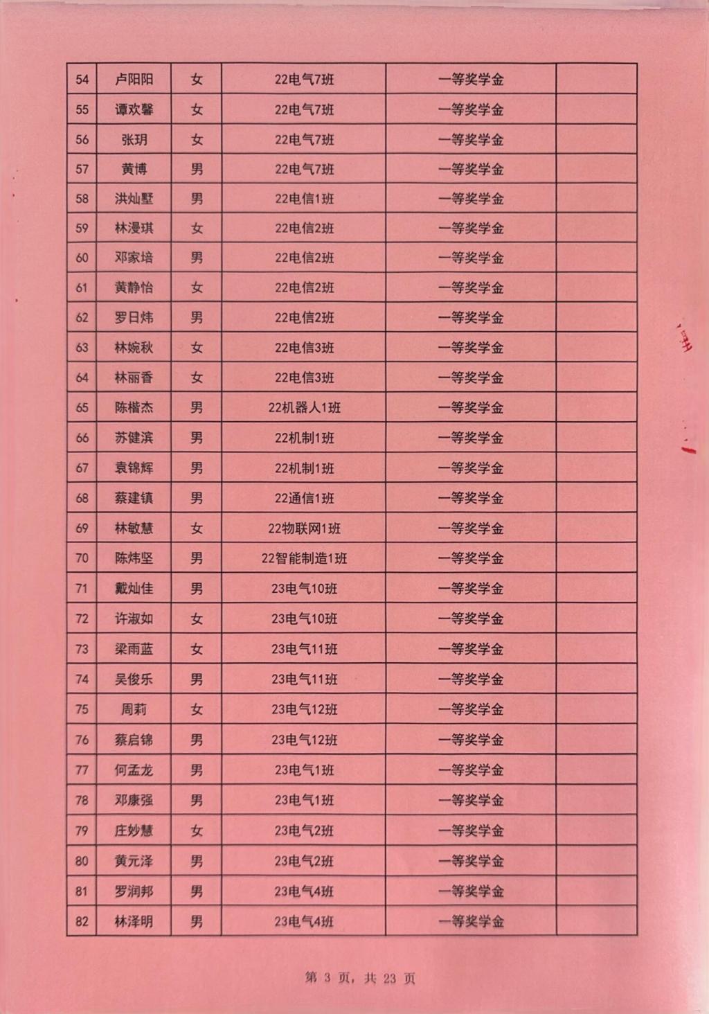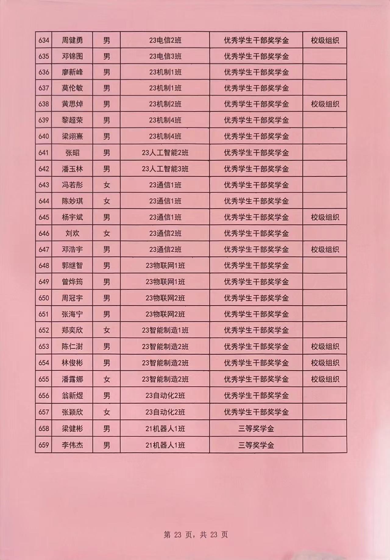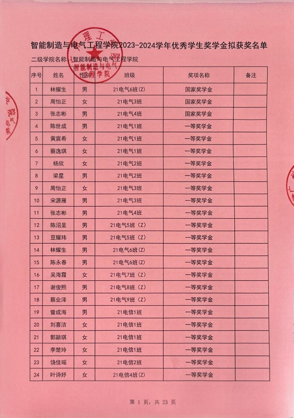 根据《广州理工学院学生处关于印发《2023-2024学年奖学金评比工作方案》的通知(广州理工学函〔2024〕148号),经过学院严格评选并公示,现将获得2023-2024学年学校优秀学生奖学金的林耀生等659名同学予以公示。公示时间从2024年9月25日至9月28日。如对公示内容有异议,请在公示期间内向智电学院办公室反映。反映情况时请签署真实姓名和联系电话,有具体事实,不签署真实姓名或不提供具体事实材料的,将不予受理。