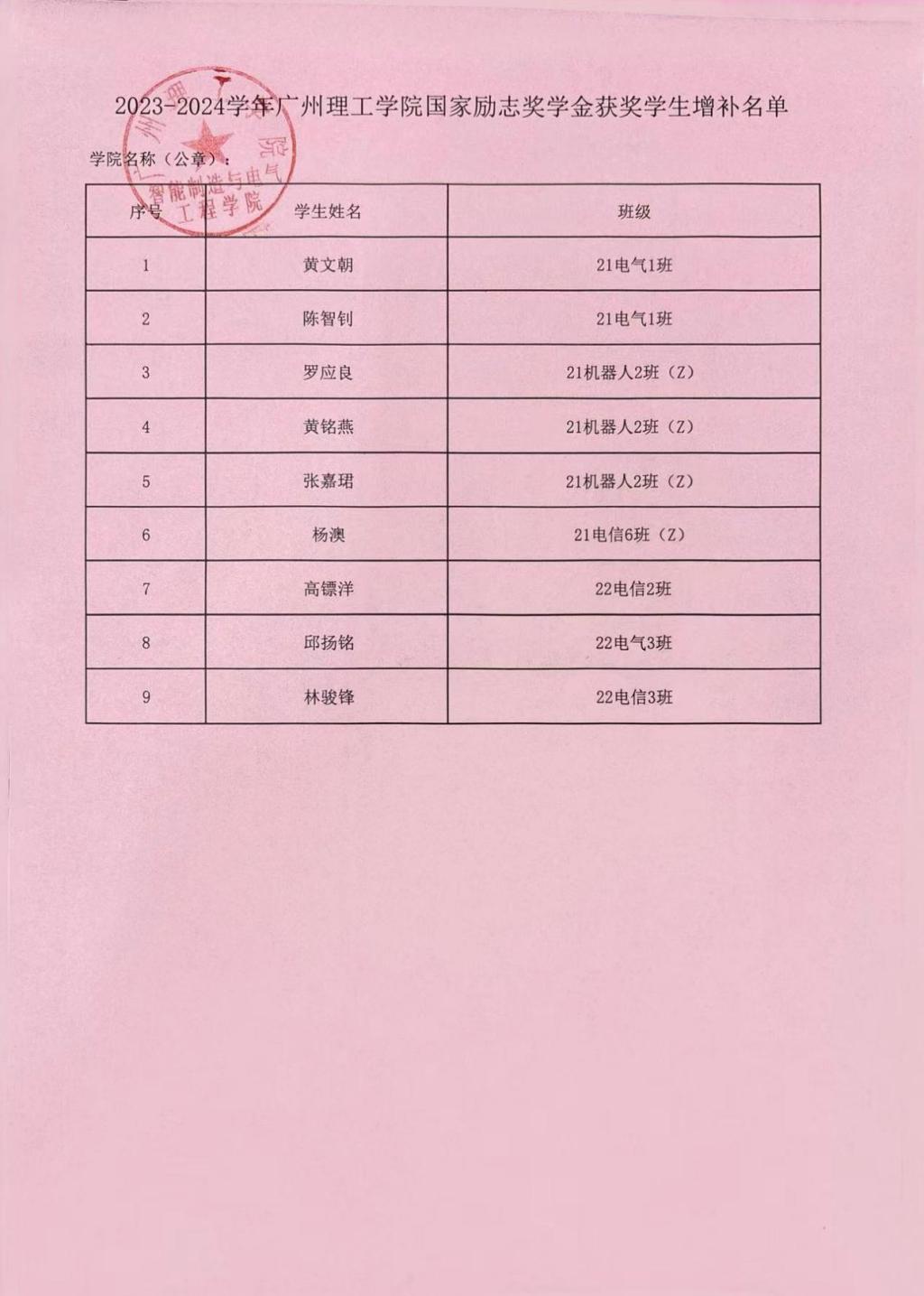 根据《关于开展2023-2024学年国家励志奖学金评选⼯作通知》(⼴州理⼯学院助函(2024)14号),KY开元集团本着公平、公正、公开的原则对国家励志申请材料进⾏严格评选,继拟通过名单公示后,补增9名同学获得国家励志奖学金。