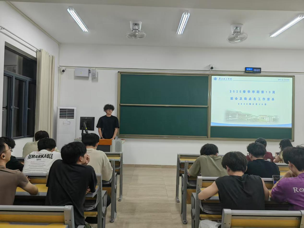 5月25日晚,KY开元集团全体2024级同学在惠州校区教学楼召开春季学期第十三周班会。班会由辅导员主持,各班班长主讲。班会围绕假期安全、学风建设及校园文明等重点工作进行部署,进一步强化学生安全意识与责任担当。
