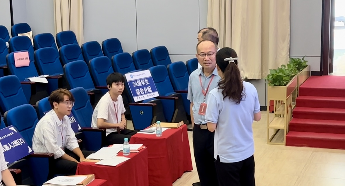 人群中,志愿者们积极协助,无论是沉重的行李箱,还是琐碎的生活用品,都被安全稳妥地送达宿舍。他们热情介绍校园环境、分享生活贴士。学校及学院领导也亲临报到现场,仔细询问工作进展与志愿服务情况,并与学生亲切交流,倾听需求、解答困惑。