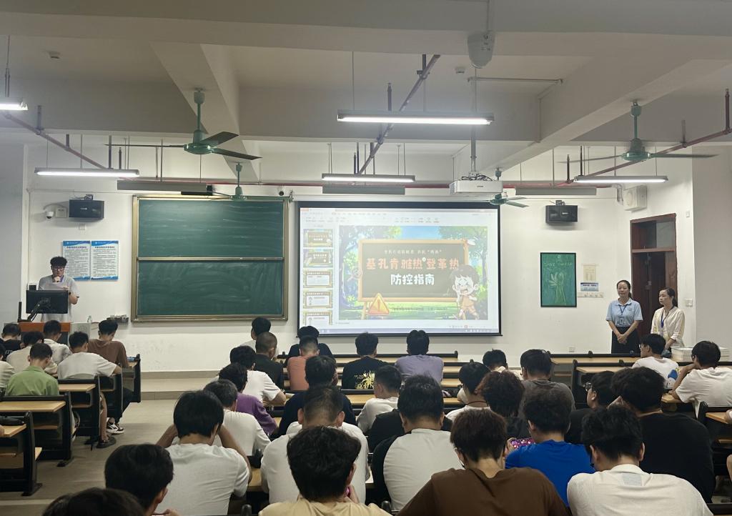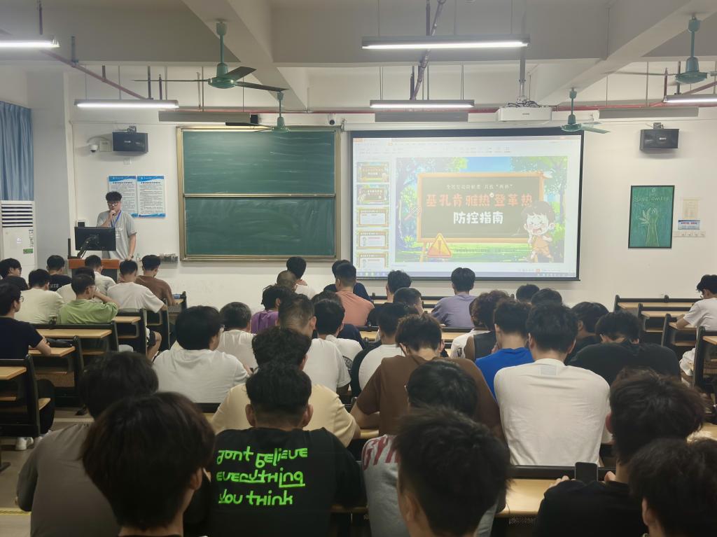 班会伊始,辅导员们首先表达了对同学们新学期的关心与问候,提醒大家在适应新学期节奏的同时,也要关注自身健康与安全。随后,辅导员结合详实的图文资料,向同学们系统讲解了基孔肯雅热与登革热的传播途径、典型临床症状及潜在危害,重点强调“伊蚊叮咬是两种疾病的主要传播方式”,让大家清晰掌握防控关键要点。