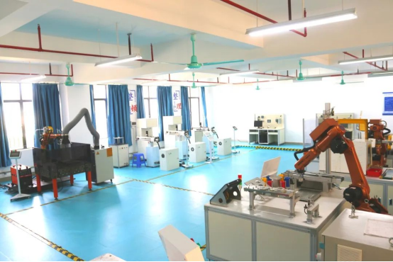 学院有省级教学实验示范中心2个,智能制造、电气电子各类实验室69个,教学科研仪器设备总值4000多万元;有省级大学生实践教学基地2个,校外实习基地33个。广东省机器人集成与应用技术工程研究中心,具备一定的研发能力,承接校内外纵横向研究项目和知识产权转化,已有4项专利转化为产品,创造产值2000多万元;校办企业广州园大智能有限公司,主营业务为机器人教学设备,年产值5000多万元,行销全国十多个省市的职业技术院校。