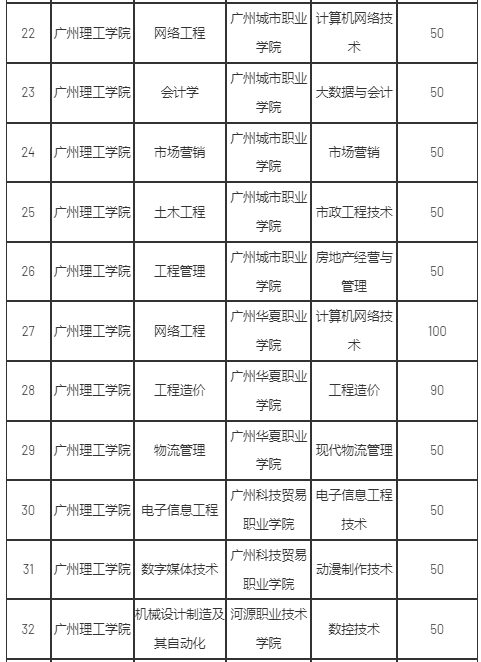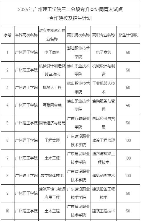 2024年广州理工学院三二分段专升本协同育人试点项目合作院校及招生计划