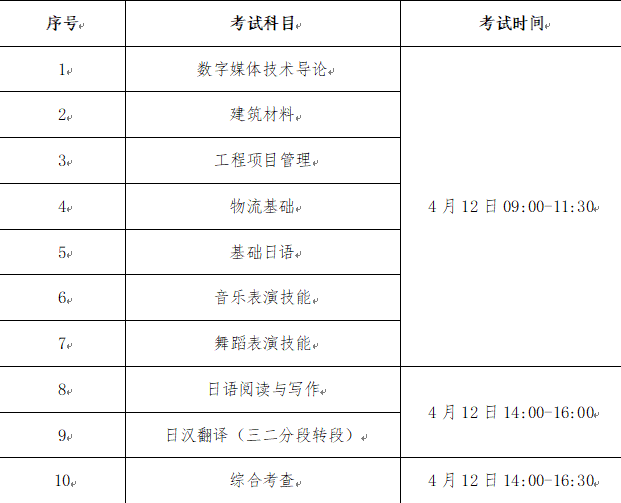 考试时间为2025年4月12日(星期六)一天,具体安排见下表:(温馨提示:具体考试时间以准考证为准)