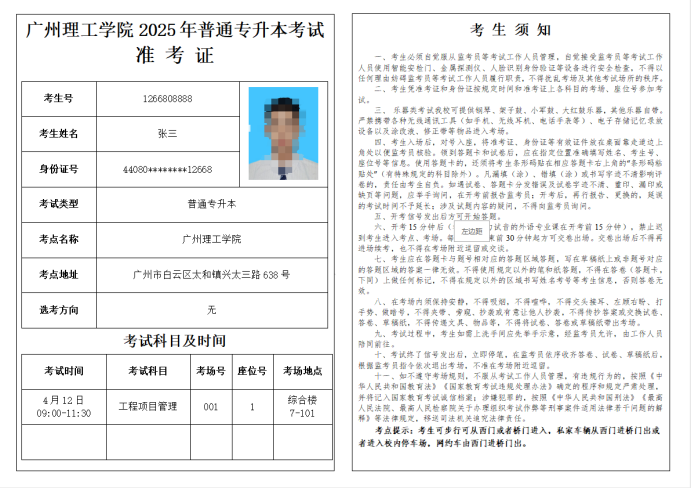 考生打印准考证后,请细读“考生须知”,并提前熟悉来校路线,确保按时参加考试。