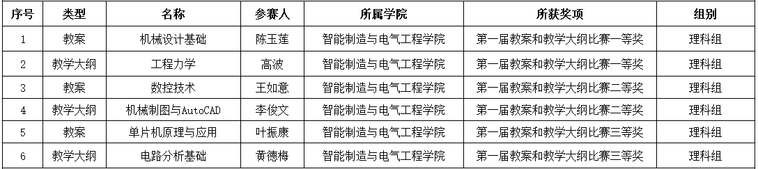 智电学院第一届教案和教学大纲比赛获奖教师名单