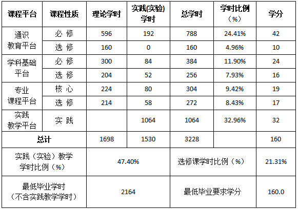 主要的专业实验/实训:电工电子技术基础实验、工程材料实验、工程力学实验、控制工程基础实验、机械设计基础实验、机械制造技术基础实验、液压与气压传动实验、电气控制与PLC实验、机器人技术实验、机器人传感与测试技术实验、机器人系统设计实验、专业认知实习、制图实训、金工实习B、电工电子实习、机械设计基础课程设计、电气控制与PLC课程设计、工业机器人编程与仿真实训、双臂机器人编程控制、工业机器人装配与调试实训、工业机器人工作站综合实训、机器人工作站故障诊断与维修、专业实习、毕业实习、毕业设计。
