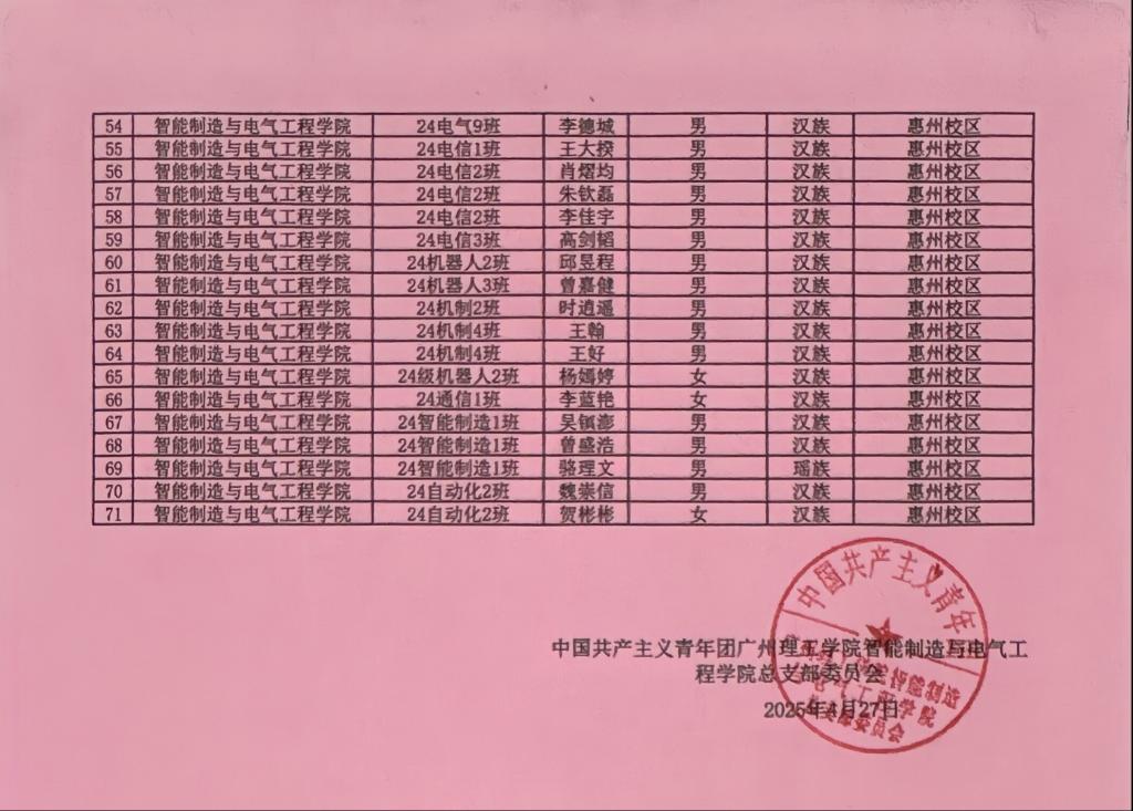 根据《关于做好2025年上半年发展新团员工作的通知》文件精神,中国共产主义青年团广州理工学院KY开元集团总支部委员会于2025年4月筛选出2025年上半年发展新团员对象。现将发展新团员拟推荐名单予以公示。