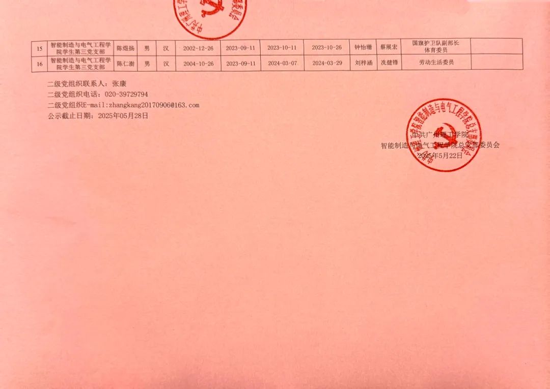 经党支部、党总支审查,拟将何铭锋等16名同志发展为中共预备党员,为增强发展党员工作的透明度,强化群众的监督作用,减少工作失误和偏差,确保党员发展工作质量,根据发展党员工作有关要求,现将具体情况公示如下。