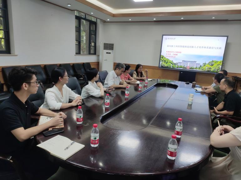 在参观结束后,我们与华中科技大学的教师和负责人进行了座谈交流。国家重点实验室负责人王峻峰就智能制造创新人才培养、课程建设和创新教育等方面与我们进行了深入的交流。通过此次交流,我们对国家级实训中心有了更加深入的了解,并从华中科技大学这样的985名校中获得了一些宝贵的教学管理经验。由衷感谢华中科技大学工创中心的周琴主席、机械科学与工程学院的刘伦洪教授以及其他教师和负责人对我们的热烈欢迎和支持。