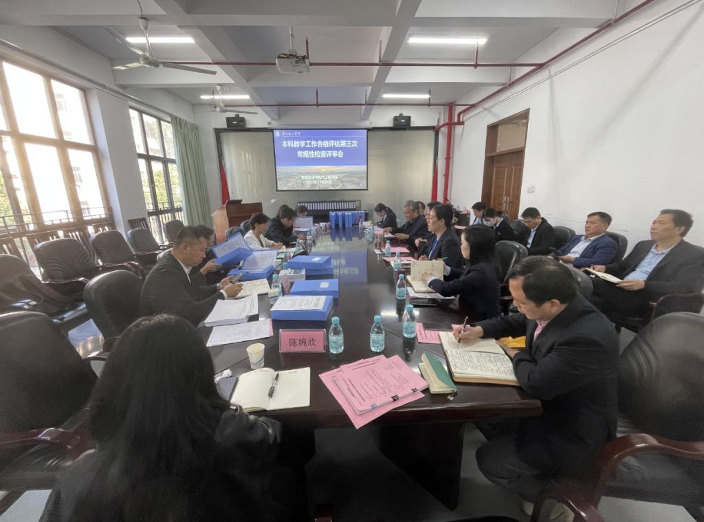 11月28日上午,KY开元集团迎接评建工作第三次常规性检查,学校检查工作组由副校长张世梅带队,成员有评建办常务副主任陈英征、副主任陈天勇、教务处副处长汪美葵、教务处副处长杨艳、实验与设备处副处长高文財、评建办陈婉欣老师。会议由李玉忠院长主持,学院参会人员有党总支书记吕在艳、副院长朱亚峰、副院长孟遂民、系主任、办公室主任、评估专员、教师代表。