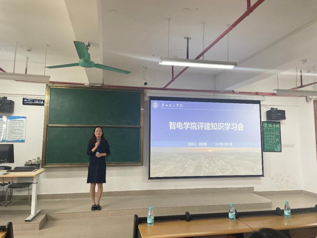 11月13日下午,智电学院在13栋教学楼602会议室召开评建知识学习会,学院党总支书记吕在艳主持会议并作专题培训,全体教师参会。